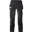 Byxa med stretchpartier fram, bak och på benen för optimal rörelsefrihet och komfort. Förstärkningar av Cordura. Två löst hängande förstärkta spikfickor. Den ena med tre mindre fickor och verktygshällor, den andra med extra ficka och verktygshällor. Två rymliga framfickor. Två sidfickor, den ena med dragkedja. D-ring. Två förstärkta bakfickor med lös botten, varav den ena med lock. Hammarhank. Benficka med telefonficka, id-kortsficka och vattenavvisande ficka med dragkedja. Tumstocksficka med verktygsficka, pennficka samt knapp och hälla för kniv. Förböjda knän. Förstärkta knäfickor i stretch med öppning utifrån och reglerbar höjd av knäskydden. Reflexpasspoal bak. förstärkning i benslut. Reglerbara benslut med tryckknappar. Hårt utsatta fickor är nitförstärkta. Kontrastsömmar. Tvätt 60°C.